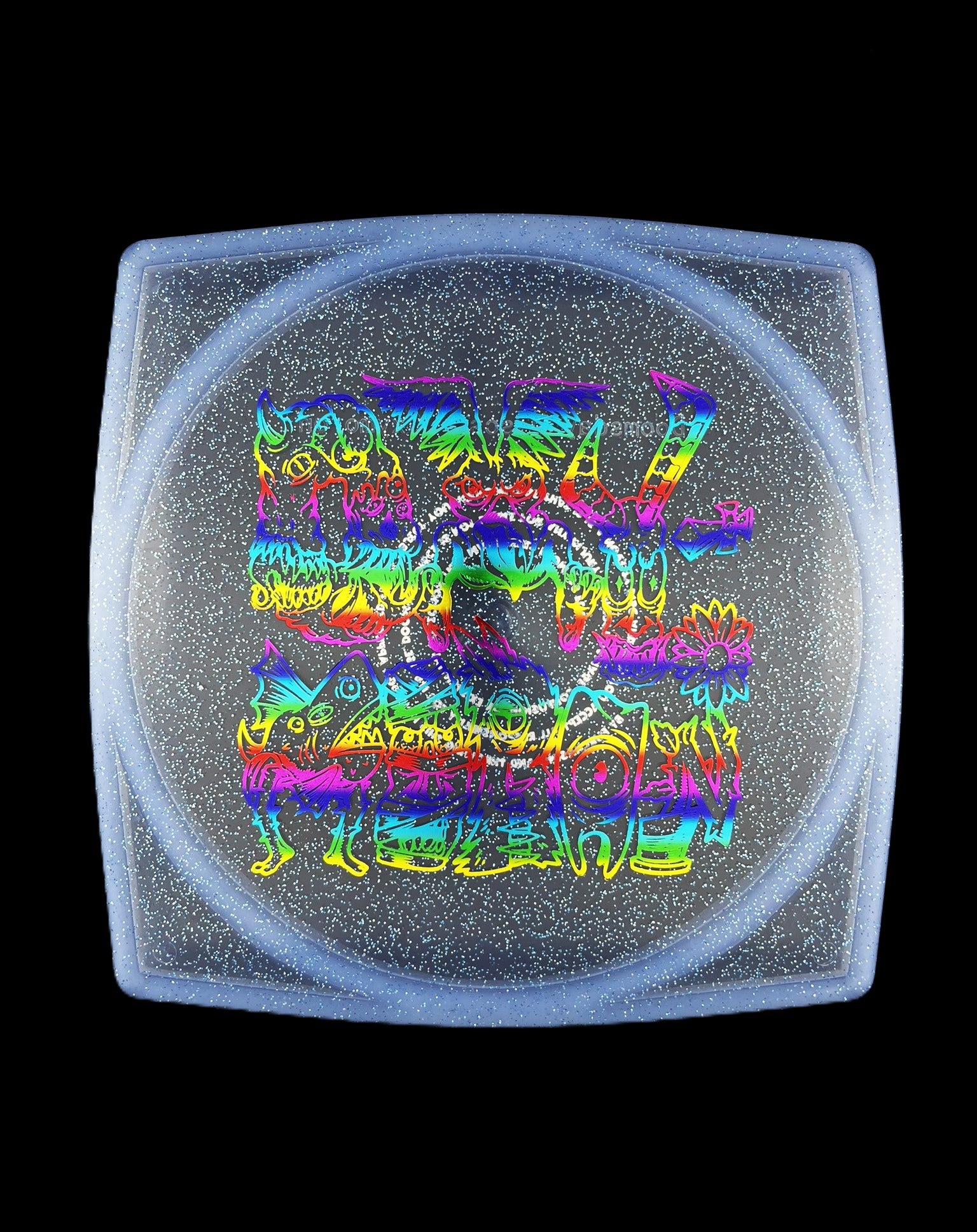 The Oxymoron is a twisted experiment in disc design. It is a square-shaped "disc" that is not PDGA approved because it is not the right shape for competitive disc golf. But that didn't stop Doomsday Discs from making them for entertainment purposes and casual rounds. It has a round inside rim on the bottom so that it feels more natural when gripped...well...as natural as you can get with a square disc. The square edges tend to give the "disc" extra helicopter-like lift as it spins in flight, making the disc rise as it flies.