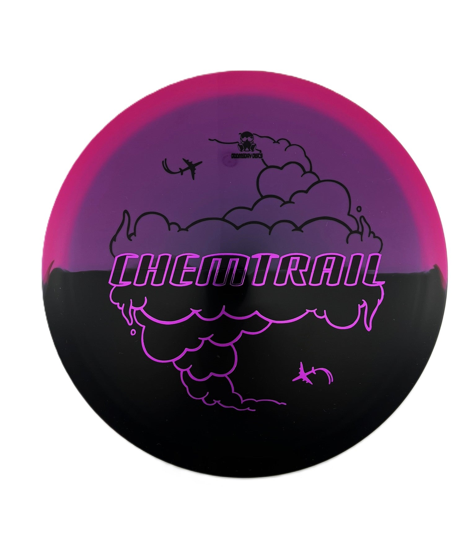 The Chemtrail is a fairway driver designed to "hold the line," following the course and angle upon which you release the disc, just like jets leave toxic, DNA-altering chemtrails in straight lines across the skies. As part of the Conspiracy Line of discs, this driver fills a very important slot in almost every player's bag-- one that authoritarian leaders across the globe seek; that of complete control.