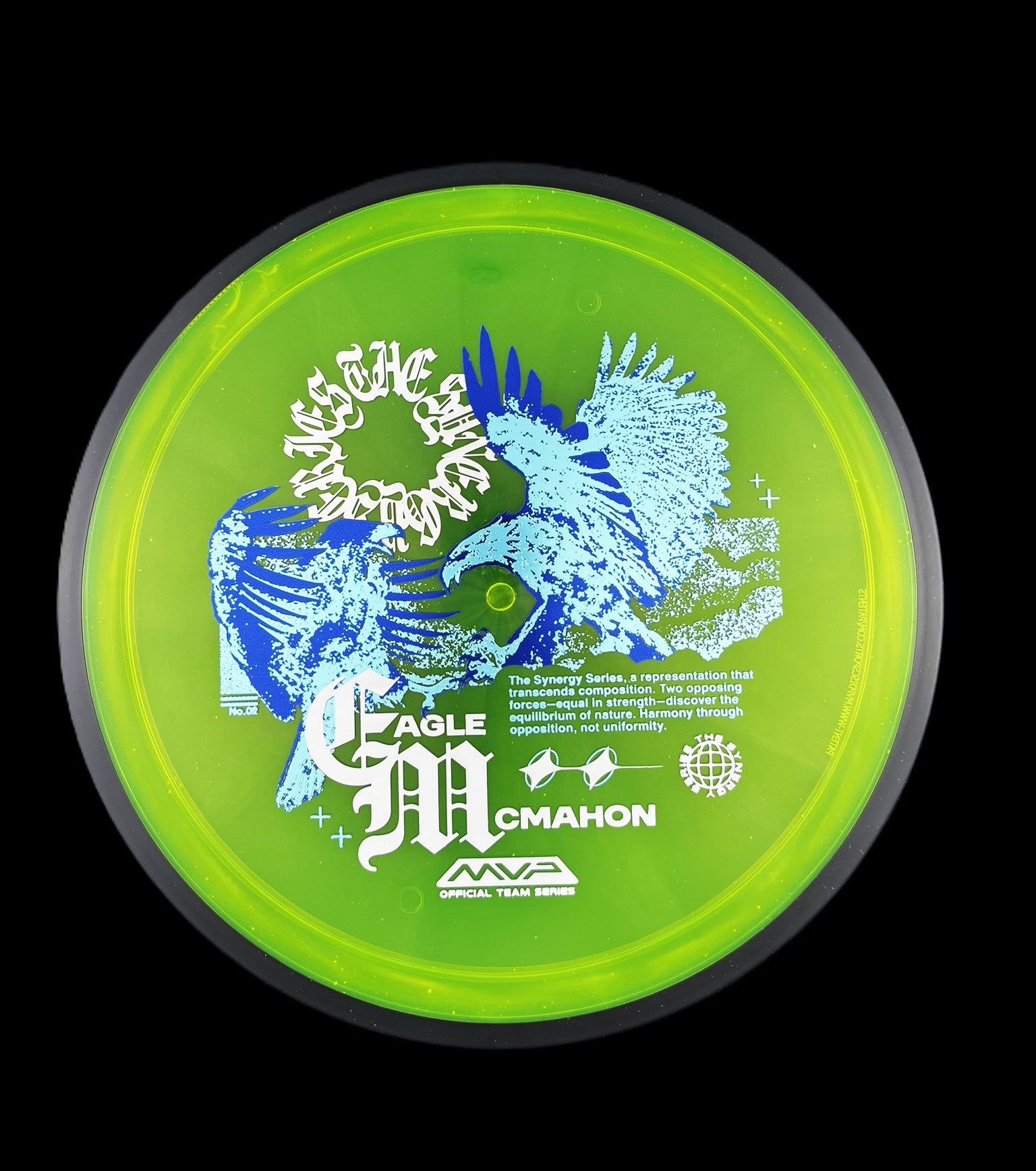 The second disc in Eagle McMahon’s Synergy Series has arrived! Choosing the Proton Resistor for his next entry - complete with another beautiful design from Green C Studio - this disc introduces the concept of equilibrium through two opposing forces equal in strength. Out on the course, not every round goes the way you hoped it would, and it becomes easy to let the negative feelings take over. This is something even professionals like Eagle McMahon have struggled with. However, through reflection and resistance he has learned that there is always good with the bad. The trick is finding equilibrium through that opposition, not uniformity - an acceptance of the natural order. Know that birdies will come with the bogies, and let the Proton Resistor be a constant and dependable reminder that you can trust the process.