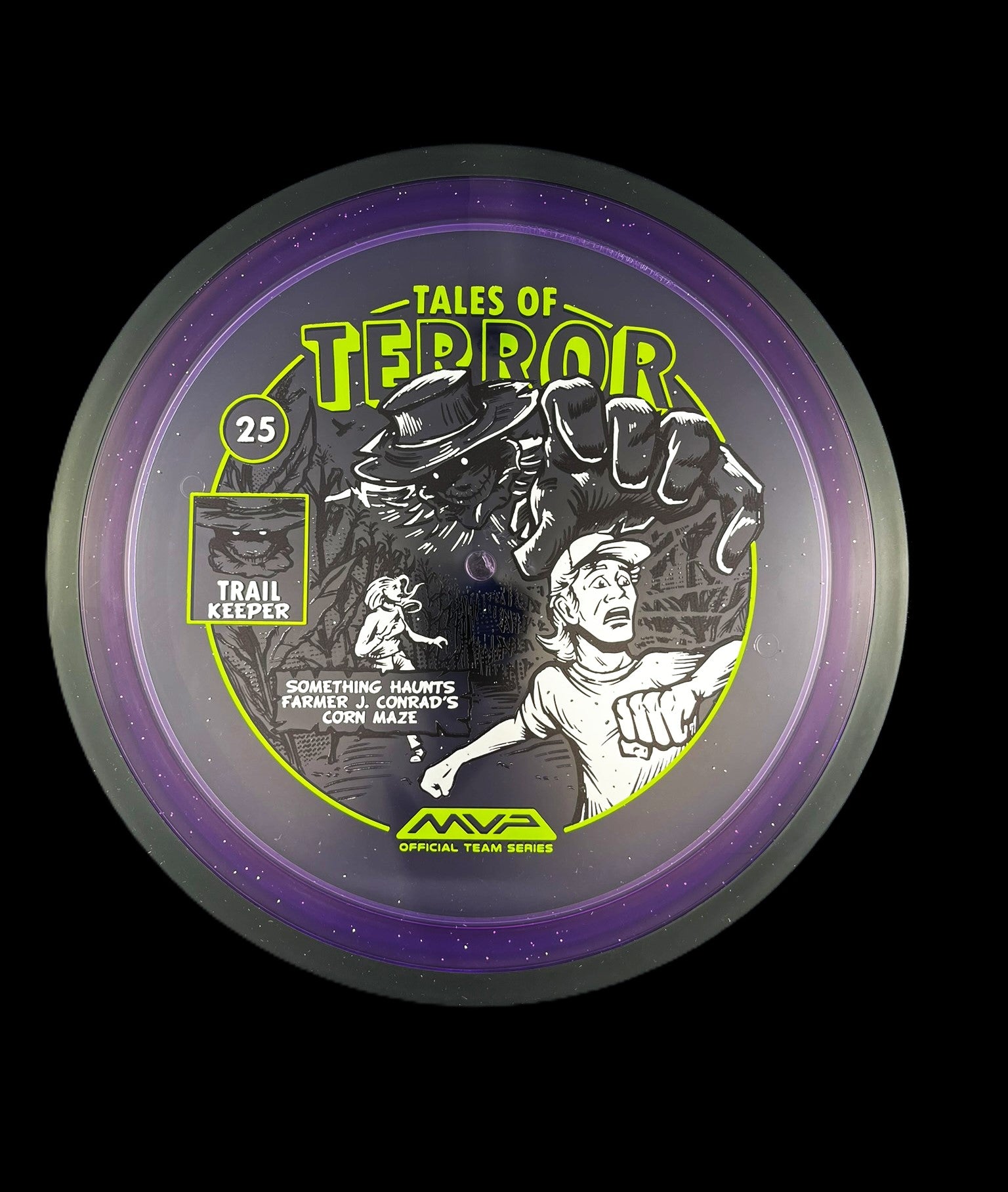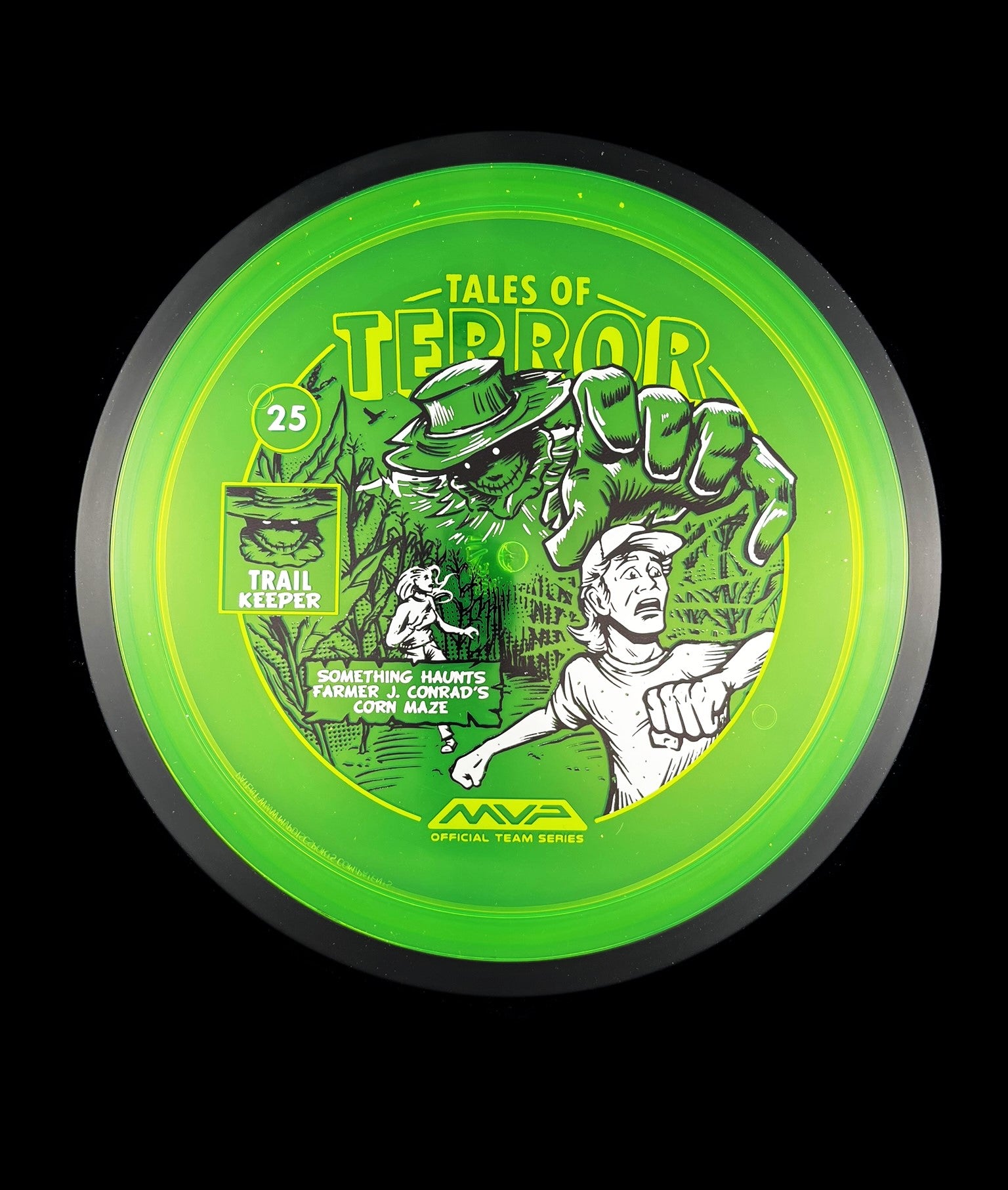 The highly requested fan favorite Proton Trail has returned! Green C Studio adorns this disc with a glimpse of the Trail Keeper haunting Conrad’s Corn Maze, a classic horror story. Excelling in hyzer-flip drives, turnovers, and straight shots, the Trail has become one of the most popular drivers in the MVP lineup that throwers of all power levels will find significant use for. You don’t have to get lost in a killer corn field to get your hands on one of these, just head over to your favorite local or online MVP dealer to get yours today!